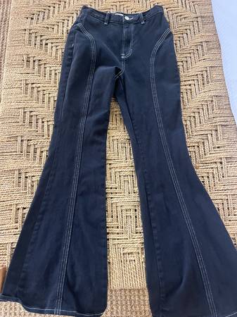 Women's Pac Sun Brand Bell Flare Black Jeans w/ White Stitching - NEW W/O Tags - Size 2