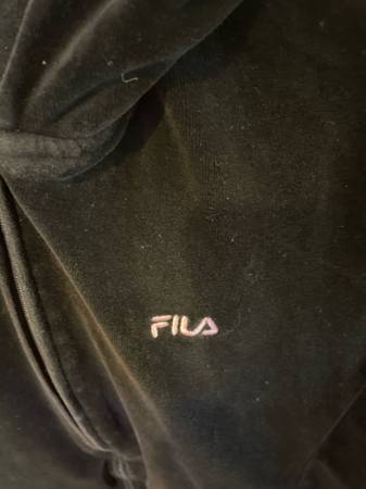 Ladies black jacket with hood, FILA, with white ornament on arms, great condition, just like new, soft material, $5 in south Escondido 92029