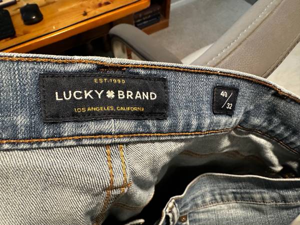 Selling because no longer my husband's size, cleaning out closet. Sold new for approx $99. For More Information...text me, don't email. I work in Carlsbad CA and live in Fallbrook CA so we could possibly meet somewhere. Classic rips around upper knee area in front on both legs. Leather tag in back is starting to pull up on right side.