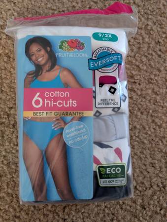 6-pack, size 9/2X, breathable Eversoft cotton, eco packaging. I am cleaning home. Please see my other listings. If you buy more than one item at one time, get all for 10% off.