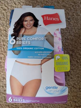 6 pack of 100% organic cotton briefs, tagless, gentle on skin. I am cleaning home. Please see my other listings. If you buy more than one item at one time, get all for 10% off.
