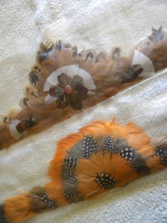 New, never worn unisex feather hat bands. The orange band is 28" long and the brown band is 27" long. $5 each. Reply by calling . DO NOT TEXT