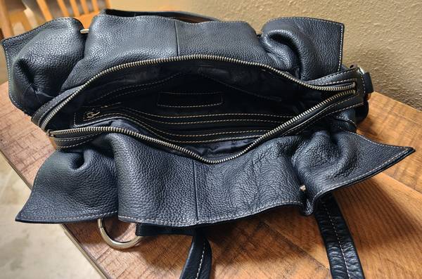 Dimensions: Purse body height: 11”H, Purse interior height: 8”H, Width across: 14”W, Depth: 6”D, Purse total height including straps: 21”H
