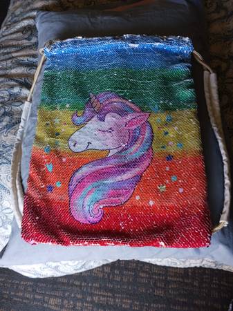 Cute unicorn string backpack. Unicorn picture is made of sequins. Made of canvas. Just like new. In amazing shape. 18 in deep 15 in wide. Inside pocket