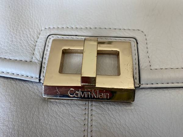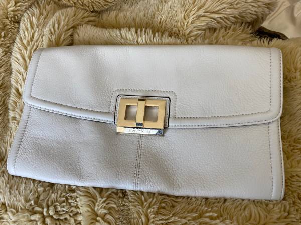 Authentic Calvin Klein Leather clutch bag. Fantastic quality. Measures 13.75” x 7.5”. Cream color. Good condition for its age