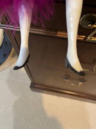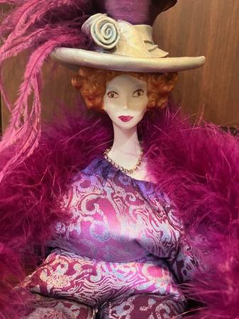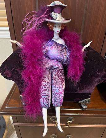 This one-of-a-kind whimsical porcelain and beanbag doll is a "Poupee by Isabelle" (poupee is french for doll). She is 18" tall, with painted nails, painted-on shoes, necklace, feather boa, and a...