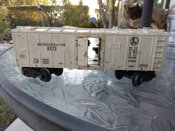 1948-53 Lionel locomotive (2026 027) coal car with whistle, caboose, refer car (3 doors missing) & cattle car, the tanker and dumping car are late 70s everything pictured is included. Tracks, controller, ect. Fair to good condition...see pics. Not working needs attention. $100