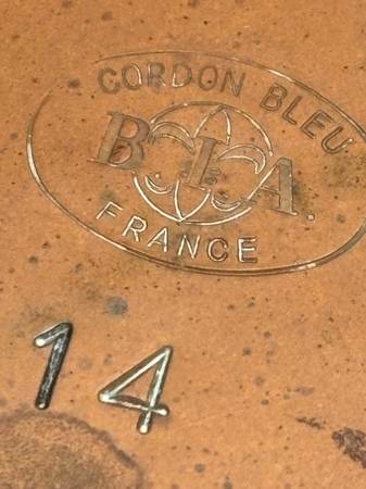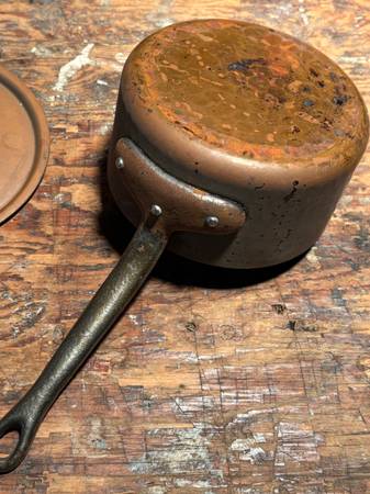 Vintage Hammered Cordon Bleu BIA copper sauce pan with matching copper lid Made in France Pan and Lid have 14 and Cordon Blue stamps Will shine like new with a little cleaning 14cm =5.512 in in...