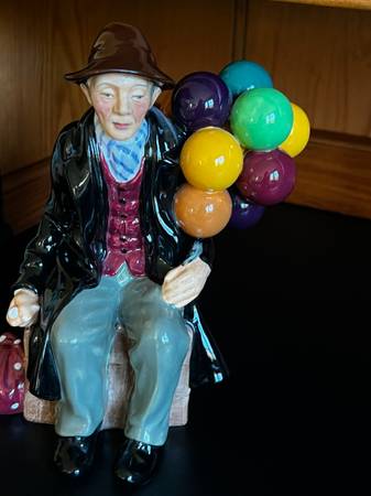 A charming piece from 1954 crafted from fine bone china with a glossy finish, this figurine stands 7 1/2 inches high and 5 inches in width. "The Balloon Man" is a testament to the craftsmanship of the United Kingdom's mid-20th century artistry. A unique statement piece for Royal Doulton collectors.
