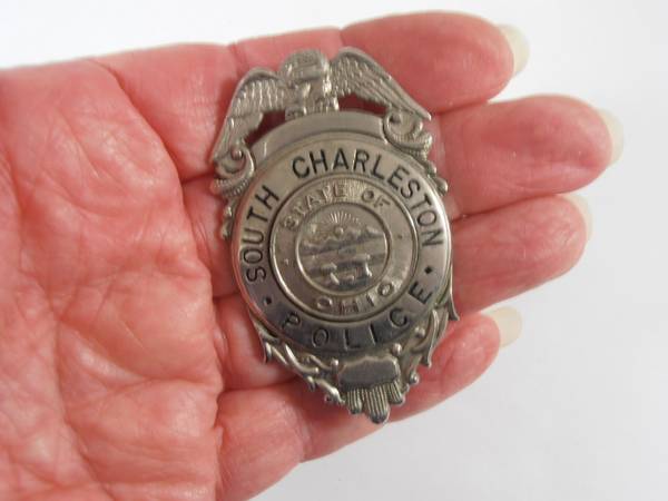 For sale is this vintage and OBSOLETE police badge from South Charleston Ohio. State of Ohio seal in the center. Measures about 2 ½” by 1 ½”. No flaws found