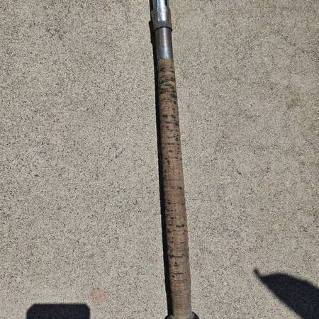 Antique/Vintage Bamboo one piece Deep Sea fishing Pole-Rod, ,overall very nice 94 inches long, made from Bamboo, but this early style use full round Bamboo, and not split . The lacing is still good.. two of the smaller eyes look like they have been repaired on just the eye, not touching the beautiful lacing holding the eyelits.. please see photos for better descriptions. Nice pole, we were told that it is probably a Savage from the 40s-50s great for a collector , a display, or a man cave. These one piece rods are hard to find, especially in this condition. Local pickup only in Oceanside California right off the 5 . $175 obo
