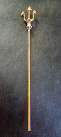 Rare 8-in tall Poseidon Trident Greek solid brass good condition wonderful artwork vintage