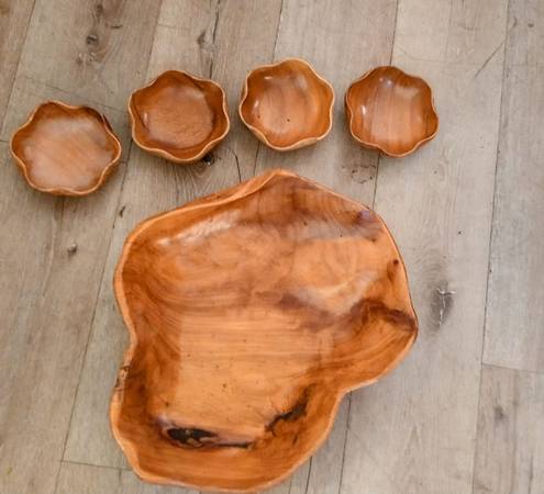 Vintage large teak serving bowl and four bowls Hawaiian tiki time - $65 (Oceanside)
