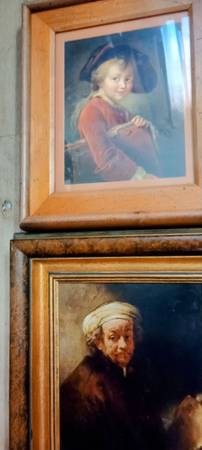 $40 each both with high quality frames these are vintage Rembrandt self portrait measures 17 and 1/4 by 15 and 1/4 inches framed and "le jeune Eleve " by Drouais 15 and 1/4 by 13 and 1/4 in framed