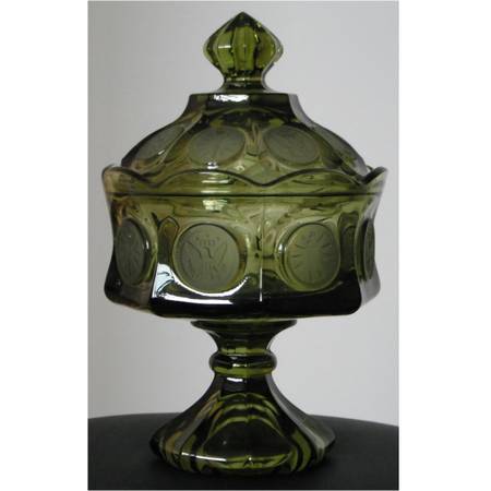 Fostoria Coin-Glass Olive-Green Wedding Bowl with Cover