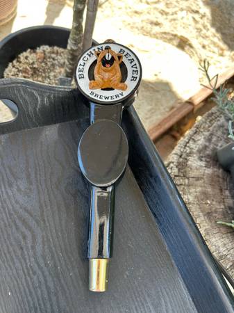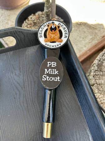 Belching Beaver Brewery beer tap handle Double sided. Both sides have Beaver and brewery name at the top. In the center one side PB Milk Stout and the other side is blank.