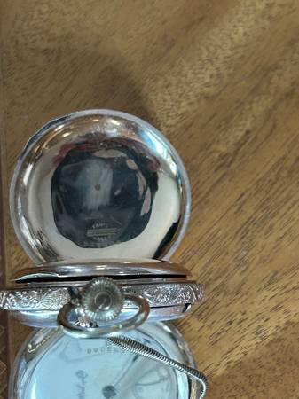 Movement – the nickel ¾ plate 17 jewel movement has a lever escapement. It is signed “Elgin Nat’l Watch Co” # 5145211.