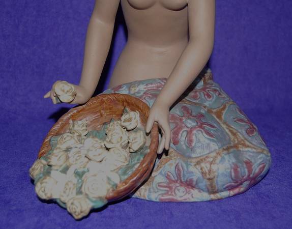 This beautiful porcelain figurine features a young Hawaiian girl sitting with a basket of colorful flowers next to her. The intricate details and lifelike expression of the girl make it a wonderful addition to any collection. The piece was manufactured by Lladro between 1982 and 2000. This comes from a non-smoking and a pet-free home. The figurine is in excellent condition and would make a great gift for anyone who appreciates fine art and collectibles. It is perfect for display in a living room, bedroom, or office. Don't miss out on the opportunity to own this stunning piece of decorative art.