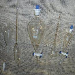 Palo scientific glass bubble dropper pipette. $25. 8 Pyrex 24-40 taper joint stoppers with lugs. $10 ea. x 8 $75. 6404-60 Pyrex 60ml. Pear-Shaped Squibb Separatory Funnel, PTFE Product Standard...
