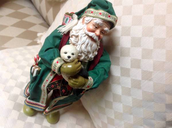 Collectible Clothtique Santa with great detail and quality. Clothing is fabric. 10" tall. Made in 1993. Great condition