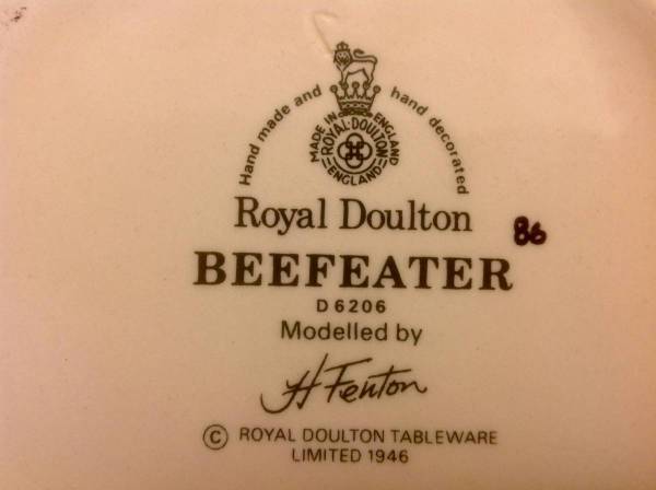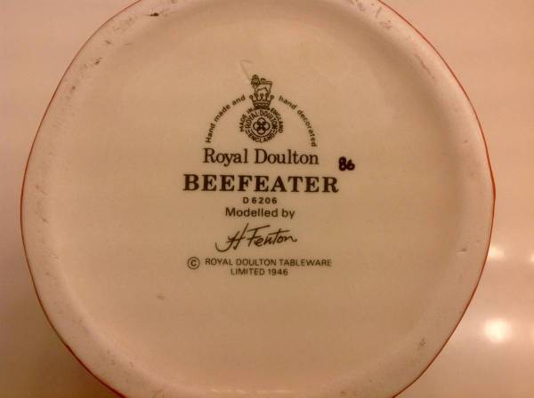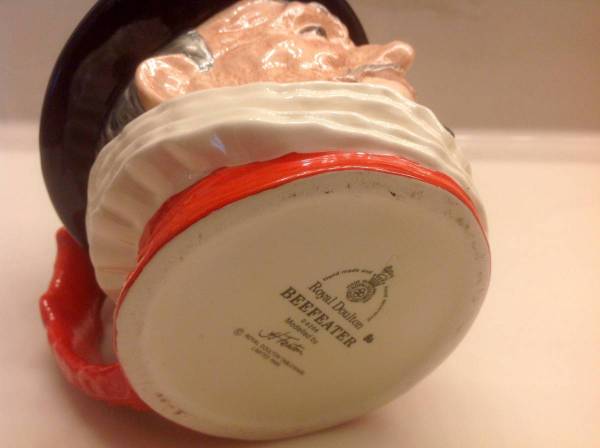 Royal Doulton Beefeater Jug. D6206. Made in England. This is a large jug. Measures 6.75" tall x 6.50" wide. Hand made and hand decorated. Copyright 1946