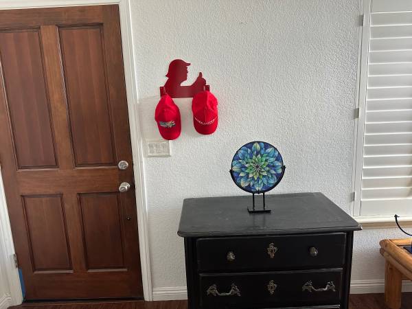 Plasma cut steel and powder coated wall mout 2 hat rack!