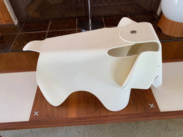 $260 firm Polypropylene elephant designed by Charles Eames Heavily worn and played with. Stamped by Vitra / Eames Office Height (in): 16½ Width (in): 16¼ Depth (in): 31