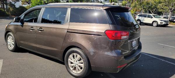 2016 Kia Sedona with a NEW factory engine ($12K value) on 2/25 with factory warranty, Gray with Gray Cloth, Heated Seats, Power Sliding Doors, Rear Camera, Parking Sensors, Cold AC, Power Driver's Seat, 7 Passenger Seating, Clean Title and Carfax. Everything works well. Runs and Drives great. Shows well inside and out. Owner moving overseas. On dealer consignment. No financing available. Shown by appt in Carlsbad. Priced to sell at $5800 firm. 139K miles. 760-822-9418