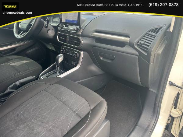 3-Cyl, EcoBoost, Turbo, 1.0 Liter, Automatic, 6-Spd w/SelectShift, FWD, Ford Co-Pilot360 Assist, Hill Start Assist, Traction Control, AdvanceTrac, ABS (4-Wheel), Keyless Entry, Push Button Start, Air Conditioning, Power Windows, Power Door Locks, Cruise Control, Power Steering, Tilt & Telescoping Wheel, AM/FM Stereo, CD/MP3 (Single Disc), SiriusXM Satellite, SYNC, Reverse Sensing System, Backup Camera, Dual Air Bags, F&R Side Air Bags, F&R Head Curtain Air Bags, Knee Air Bags, Heated Seats, Power Seat, Moon Roof, Daytime Running Lights, Fog Lights, Alloy Wheels