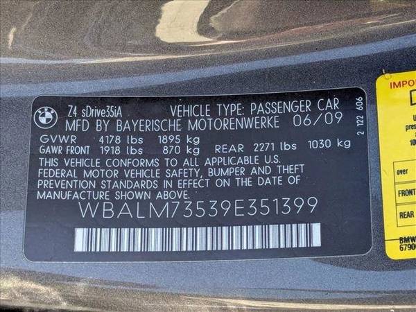 * Leather Seats * Convertible HardtopYou can find this 2009 BMW Z4 sDrive35i and many others like it at AutoNation Volkswagen Carlsbad. Go topless! This convertible is perfect way to open up more fun in your daily commute or your weekend adventures. Put performance, safety, beauty, sophistication and all the right amenities into a car, and here it is! Now you can own luxury without the luxury price tag! It's not a misprint. And the odometer isn't broken. This is a very low mileage BMW Z4. A rare find these days. More information about the 2009 BMW Z4: The new Z4 comes as a folding hard top only, which allows comfortable motoring, top up or down. Competing with the Porsche Cayman, Boxster and Audi TTS, the Z4 sDrive35i utilizes a twin-turbo engine that makes 300 hp and 300 lb-feet of torque across a wide rev range. That's more power than the TTS, and with its hatchback cargo setup, more practicality than the Boxster. This model sets itself apart with iDrive control system, folding hard top, performance and handling, and New, clean, sleek design