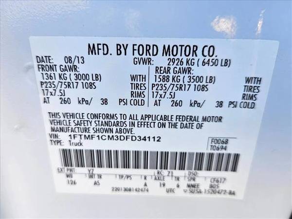 * 3.55 Axle Ratio * 3.7L V6 Ffv Engine * 6-Speed Electronic Automatic Transmission W/Od & Tow/Haul Mode * Base Equipment Group * California Emissions System * Front License Plate Bracket * Oxford White * Steel Gray; Vinyl 40/20/40 Split Bench Front SeatYou can find this 2013 Ford F-150 XL and many others like it at AutoNation Volkswagen Carlsbad. This Ford includes: 3.7L V6 FFV ENGINE (STD) Flex Fuel Capability V6 Cylinder Engine *Note - For third party subscriptions or services, please contact the dealer for more information.* This low mileage Ford F-150 has barely been touched. It's the next best thing to buying new. Driven by many, but adored by more, the Ford F-150 XL is a perfect addition to any home. More information about the 2013 Ford F-150: Ford claims class-leading fuel economy, as well as best-in-class towing and horsepower for both its base V6 engine as well as both of the available V8s. Ford also says that it's the only automaker to offer a 6-speed automatic transmission across its entire model lineup. The F-150 also offers electric power steering, which saves fuel and gives an improved steering feel. Across the lineup, the F-150 carries through with the full redesign that the truck received for 2009; since then, the F-150's very purposeful, upright instrument panel and vastly upgraded interior materials have stood out in this very competitive class. This model sets itself apart with wide range of models for all budgets, tastes and needs, class-leading towing and payload capacities, available luxury features, and Powerful and efficient powertrain lineup