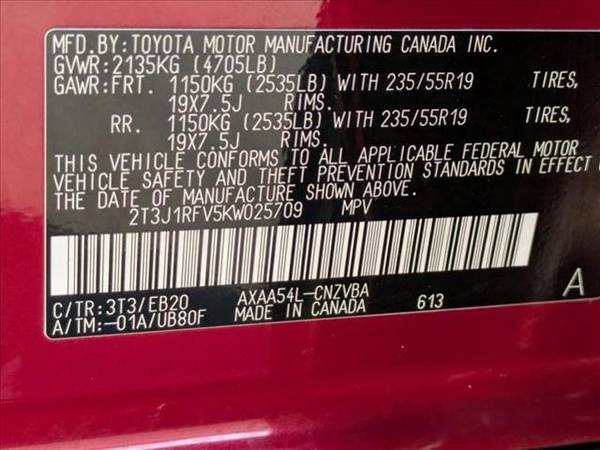 * Radio: Entune 3.0 Premium Audio W/Jbl/Clari-Fi * Advanced Technology Package * Cold Weather Package * Moon Roof * Sun/Moonroof * Navigation System * Special Color * Carpet Mat Package * Lane Keeping Assist * Keyless Start * Rear Spoiler * Cooled Front Seat(S) * 50 State Emissions * Black; Softex Seat Trim * Ruby Flare PearlAutoNation Volkswagen Carlsbad is honored to present a wonderful example of pure vehicle design... this 2019 Toyota RAV4 Adventure only has 92,518mi on it and could potentially be the vehicle of your dreams! If you're in the market for an incredible SUV -- and value on-the-road comfort and manners more than ultimate off-road prowess or tow capacity -- you'll definitely want to check out this Toyota RAV4 Adventure. Save money at the pump with this fuel-sipping Toyota RAV4. Enjoy safety and stability with this all-wheel drive vehicle and drive with confidence in any condition. There is no reason why you shouldn't buy this Toyota RAV4 Adventure. It is incomparable for the price and quality.