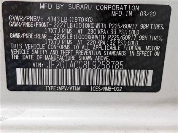 * Auto-Dimming Mirror W/Compass & Homelink * Splash Guards * Rear Bumper Cover * Rear Spoiler * Crystal White Pearl * Gray W/Orange Stitching; Cloth Upholstery * Standard ModelAutoNation Subaru Carlsbad is excited to offer this 2020 Subaru Crosstrek Premium. Off-road or on the street, this Subaru Crosstrek Premium handles with ease. Navigate through all the icky weather with ease in this AWD-equipped Subaru Crosstrek, and even get non-stop traction for your non-stop lifestyle! In addition to the amazing traction control, you may even qualify for an insurance reduction with this AWD vehicle. There are many vehicles on the market but if you are looking for a vehicle that will perform as good as it looks then this Subaru Crosstrek Premium is the one! Just what you've been looking for. With quality in mind, this vehicle is the perfect addition to take home.