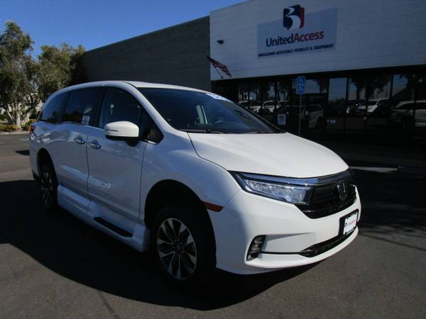 United Access of San Diego, located in the Kearny Mesa area of San Diego, has a 2023 Honda Odyssey EX-L in Platinum White Pearl with 10,897 miles on the odometer offered for sale. This Odyssey has been converted into a wheelchair accessible vehicle by VMI to help people with mobility issues be able to get out and enjoy life like everyone else can.