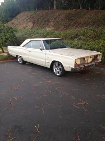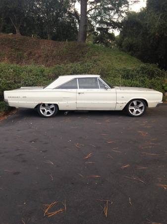 1967 Dodge Coronet running project car. Lot drivable, on non-op. Comes with nearly every part needed to customize with 1966-1967 Charger parts including complete dash with gauges, 4-bucket seat interior with console, front grill parts with hidden headlights, rear full-width taillight setup which will require custom sheet metal work to install if desired (stock taillights and moldings still in place on car). This is a 318 car with a very low mile rebuild, headers and Edelbrock 4-barrel setup. Added Mustang GT "alloy fan wheels", tires are rollers. Missing original parts (grill, headlights, seats and side moldings). New aluminum radiator. Excellent CA car/platform for customizing or for a return to original. Owned now for years, I didn't want to let it go, but I've got way too much on my plate and I cannot foresee ever getting to it, though I would like to. Better tires and the headlights must be installed in order to register/inspect/drive legally. Might consider a trade for partial cash and a non-project car or truck, but I prefer a cash sale... it just depends on what you have to trade. Over $15K spent to date, so price is firm, with my loss - your gain. Many pricey new and used parts included. Please reply with phone/text number and I'll get back with you.