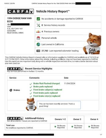 Very Low Mileage!! Only 28,126 Original Miles!! Dodge Family Wagon conversion van. 5.9L V8. This van is turn key and ready for your next road trip. New belts and hoses, brake master cylinder, brake pads, rotors and brake lines, shocks & struts, ignition wiring and sensors. All the windows were recently tinted for added privacy. The rear/ bench seat folds down into a full size bed. This van will make a great road tripper/ weekender as is or could easily be converted into a great camper by anyone with some handy DIY skills. The exterior paint is starting to flake and should probably be replaced in the near future.