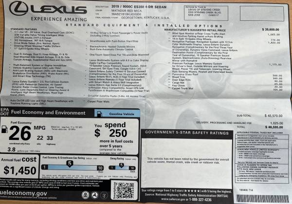 Remote Start, Smart Stop Technology, Smart Access, Power Easy Access System (Allows the driver to enter and exit the vehicle easily,) and Lexus Premium Audio.