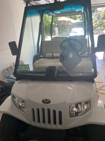 Tomberlin golf cart with new batteries. I’ve loved having this for getting around the coast!