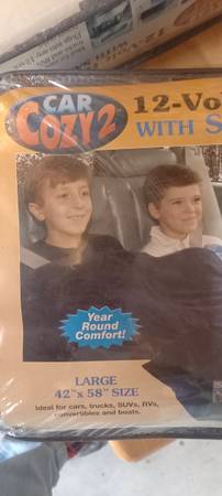 New and unused. 2 number 12v car cozy. Large 42 inch x 58 inch.