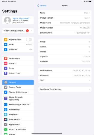 Serial number and original photos of the actual iPad for sale, iCloud free and updated to the latest os.