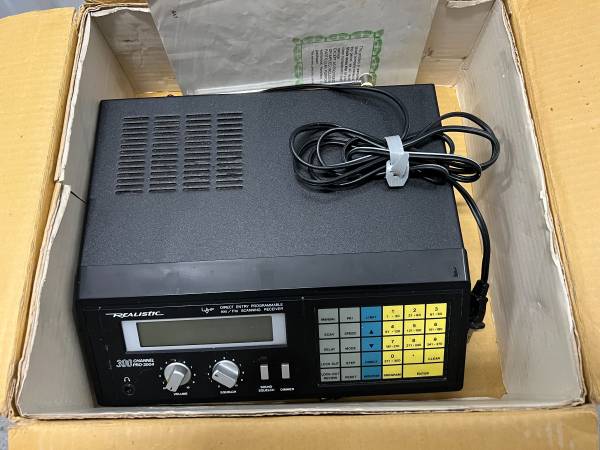 Vintage Realistic PRO-2004 Programmable Scanning Receiver — 300 channels with direct frequency entry and AM/FM reception. Known for its excellent sensitivity, fast scan rate, and wide frequency coverage, the PRO-2004 remains a favorite among radio hobbyists and collectors.