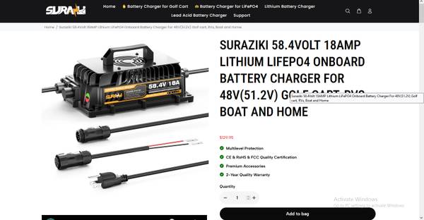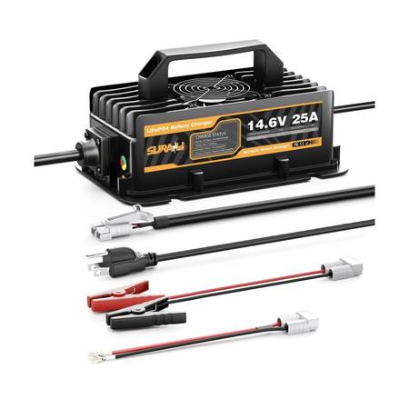 58.4V LiFePO4 battery charger. This is for 51.2V (nominal) LiFePO4 batteries. Charge current: 18 Amps. Condition: New, in original box. Comes with user manual. Made by Suraziki. Retail price: $130...