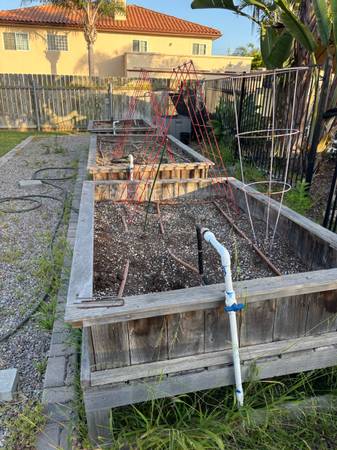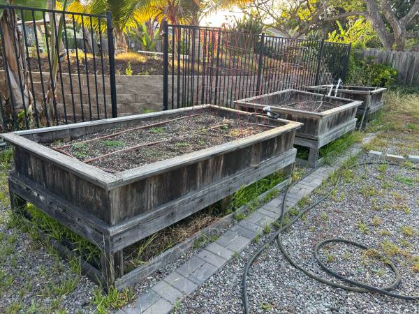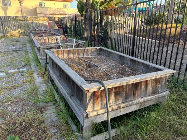 Four Garden Boxes available: 3 @ 64” x 43.5” x 26.5” @ 12”deep ($75 each) 1 @ 85.5” x 43.5” x 26.5” @ 12” deep ($125) All of them for $300