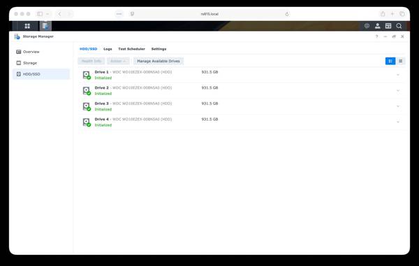 Comes with 4 x 1 TB Western Digital SATA drives of available storage.