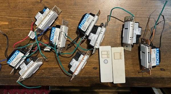 Smart home lighting, selling as a set: nine white Lutron switches plus two remote controls. See pictures for details. Reply to ad or call or text .