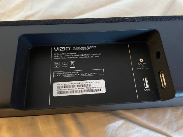 Vizio Soundbar Black 29" Long 3" Wide TV Speaker Model: SB2920-D6 USB Port AV Ports Works perfect & in perfect condition Text or email if interested