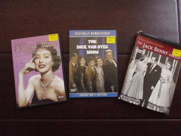 For sale are three DVDs - one each of Dick Van Dyke, Loretta Young and Jack Benny. There's one DVD in each box, just 50 cents each. Thanks! P. S. The Jack Benny DVD has been sold