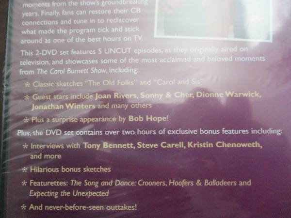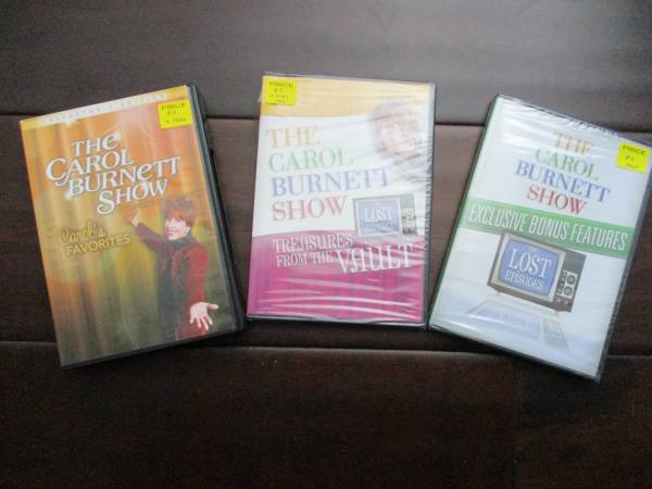 For sale is this set of DVDs of the Carol Burnett Show. The "Treasures from the Vault" set is new/unopened and has 2 DVDs, "Carol's Favorites" features 6 DVDs plus a booklet (see photo), and "The Lost Episodes" is new/unopened and has 1 DVD. If you're a Carol Burnett fan you'll love these DVDs. Just $12 for all, cash only please.