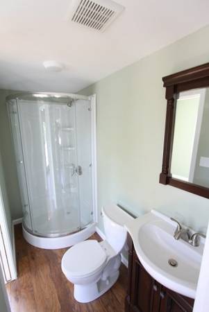 • Spacious bath - regular porcelain flush toilet, sink & large shower – solid cedar interior walls!