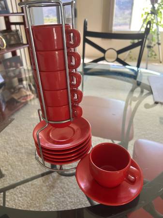 Red Espresso Cups and Saucers with Stand